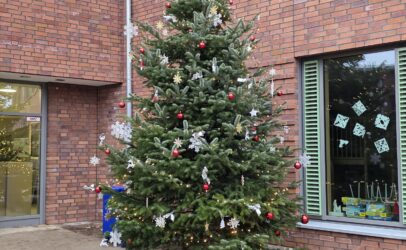 Der erste Schnee ist bereits geschmolzen, dafür 5 Grad und Regen – das ist die Vorweihnachtszeit in Hamburg. Unsere Schule trotzt den widrigen Bedingungen und hat an beiden Standorten erstmals große Weihnachtsbäume aufgestellt, die für weihnachtliche Stimmung sorgen.