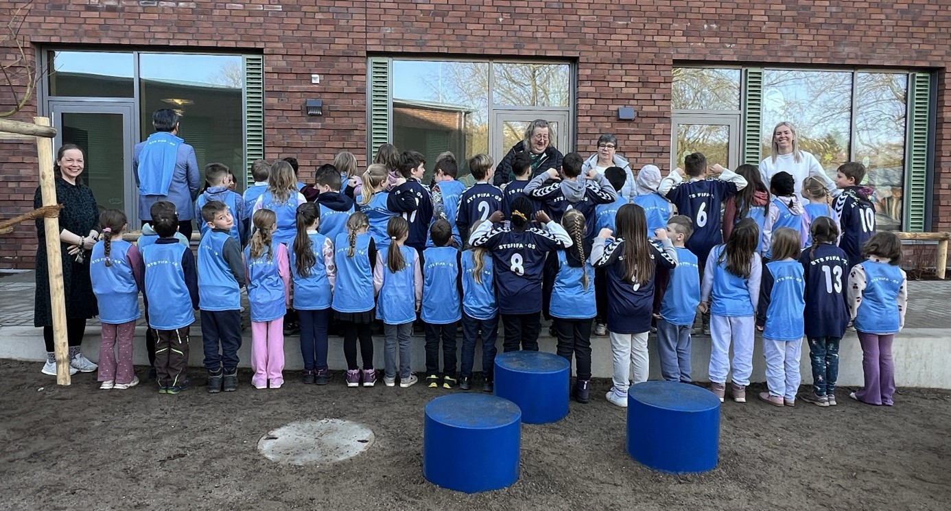 Damit unsere Schülerinnen und Schüler bei Veranstaltungen gut erkennbar sind, hat der Schulverein die Grundschule mit 100 Leibchen und 10 Trikots ausgestattet.